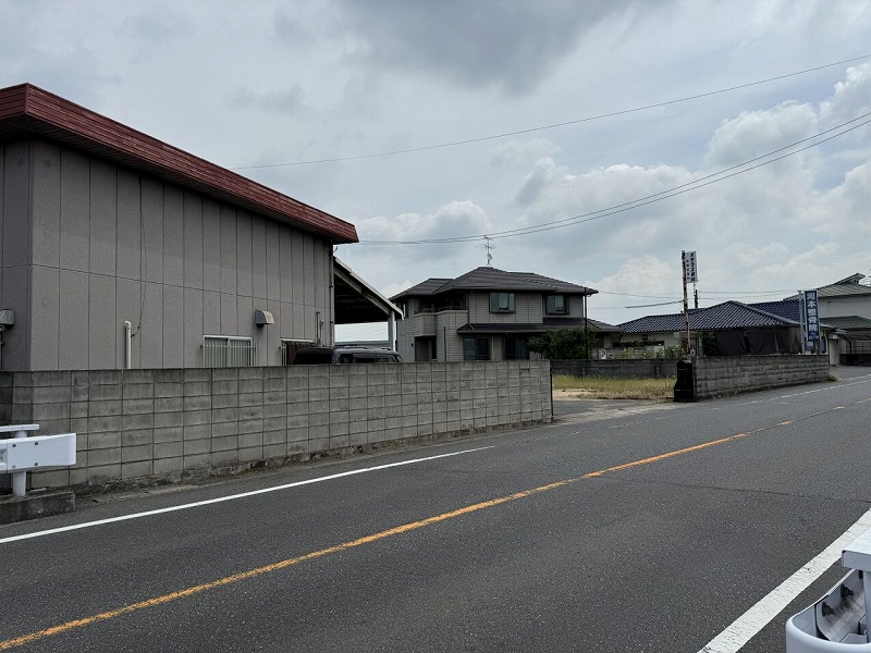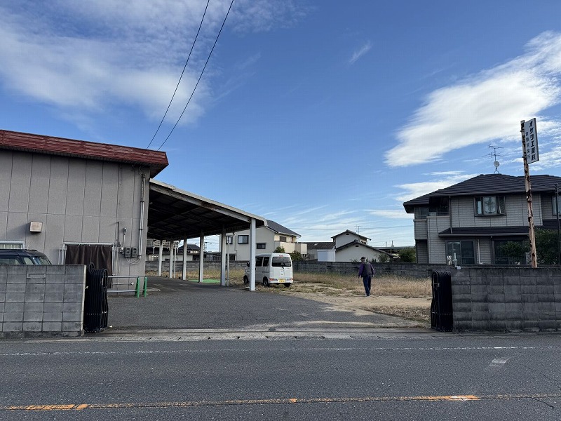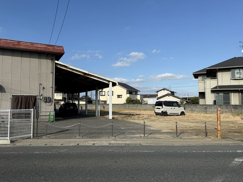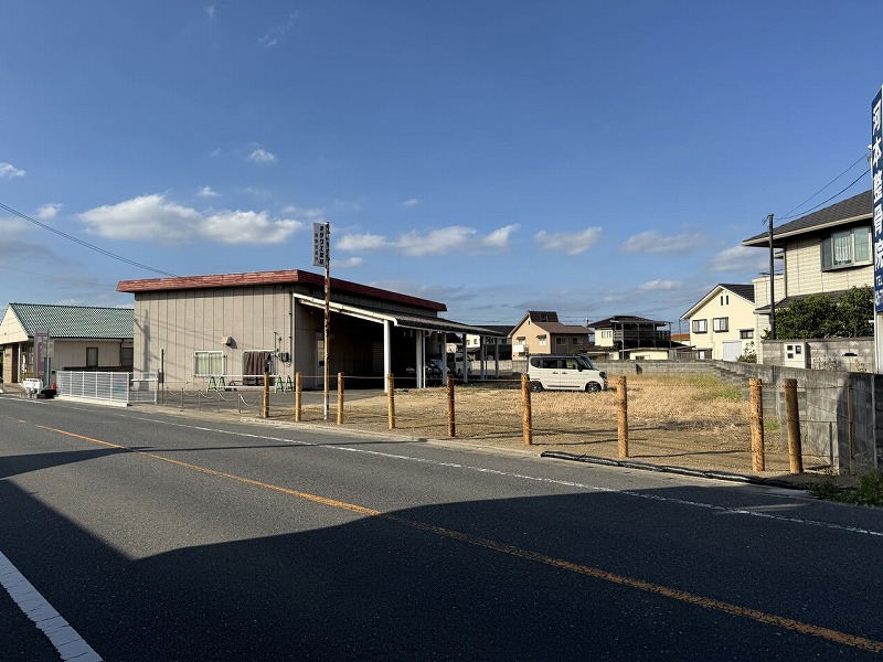 未舗装の部分は将来的に賃貸用地とするため簡易的な松杭とトラロープの柵としました。