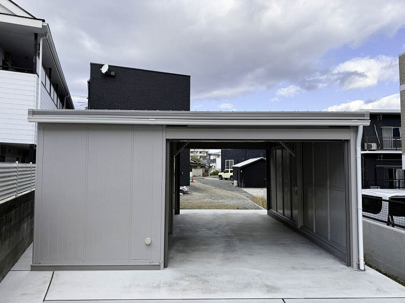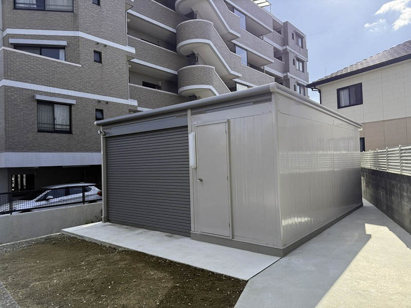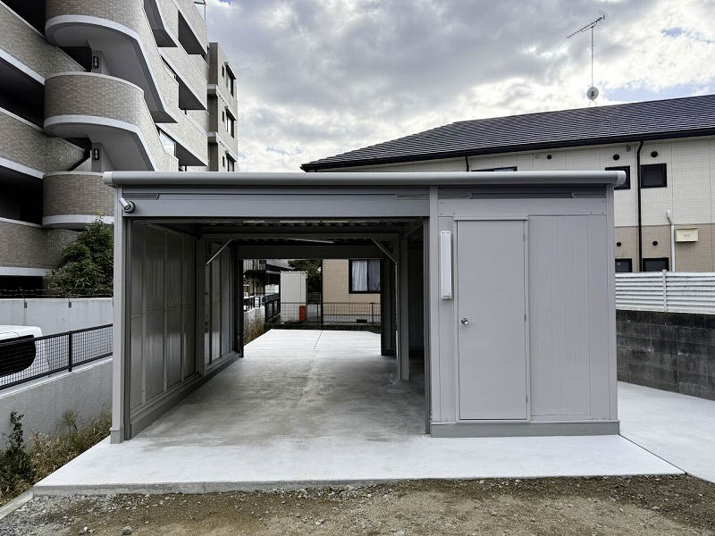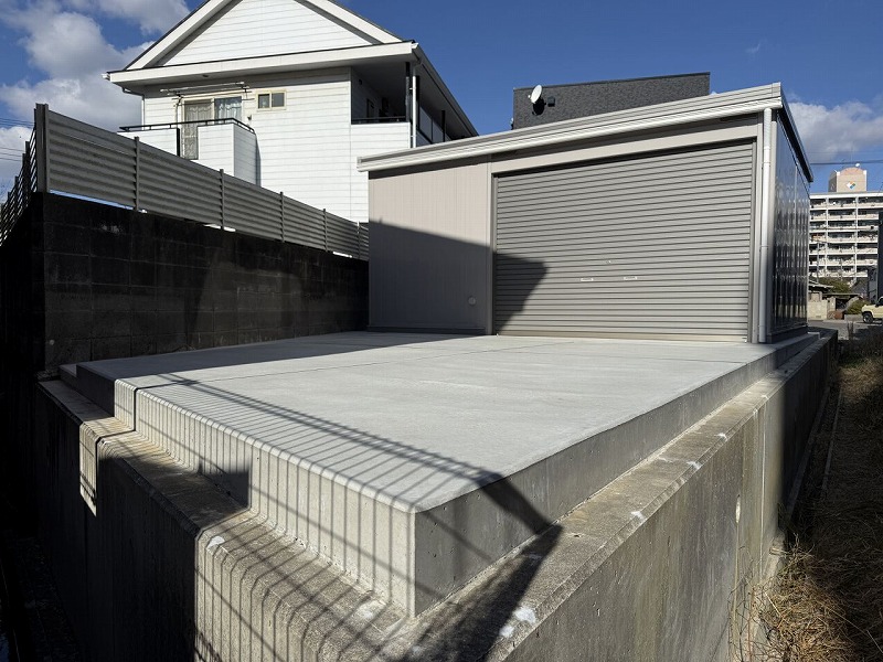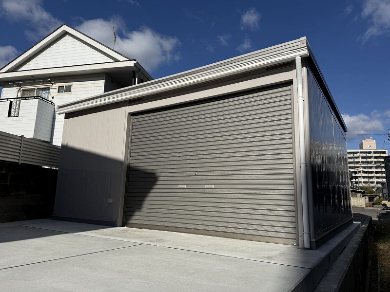 HOME > 施工実績:建築・・・ガレージ(イナバ/ヨド) > 岡山県 岡山市中区 資材倉庫新築工事
